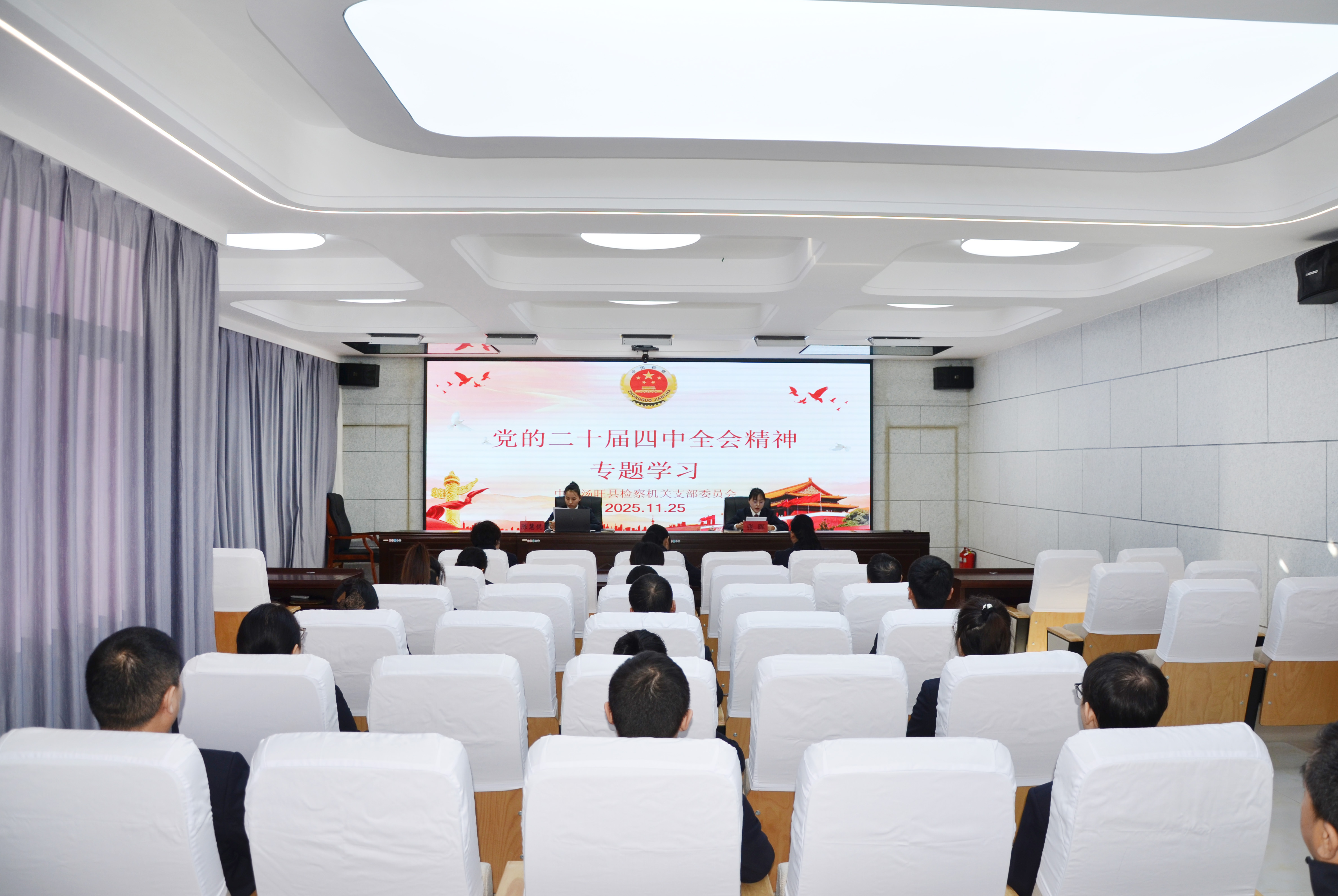 为深学细悟党的二十届四中全会精神,推动检察履职与地方发展中心大局同频共振,11月25日,汤旺县人民检察院党支部开展“深学全会精神 彰显检察担当”学习贯彻党的二十届四中全会精神主题党日活动,全体党员干警围绕全会精神集中学习、交流研讨,筑牢思想根基、凝聚奋进力量。